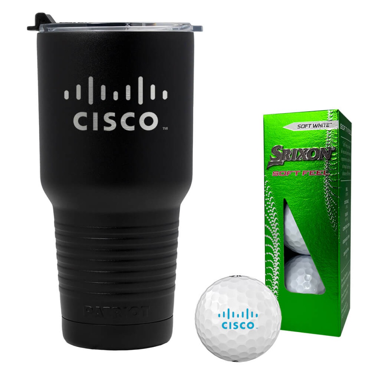 This custom set is perfect for holiday gifting, and includes a Patriot 30oz Tumbler and Srixon Soft Feel Golf Balls. Make your friends smile with this branded bundle! Include a custom greeting card for another level of appreciation.