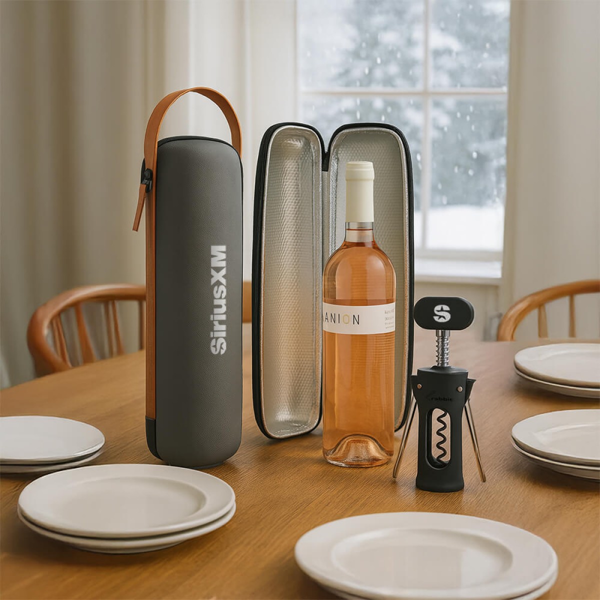 This custom set is perfect for holiday gifting, and includes a Rabbit Corkscrew and a Rabbit Wine Bottle Carrier. Make your friends and family smile with this branded bundle! Include a custom greeting card for another level of appreciation.