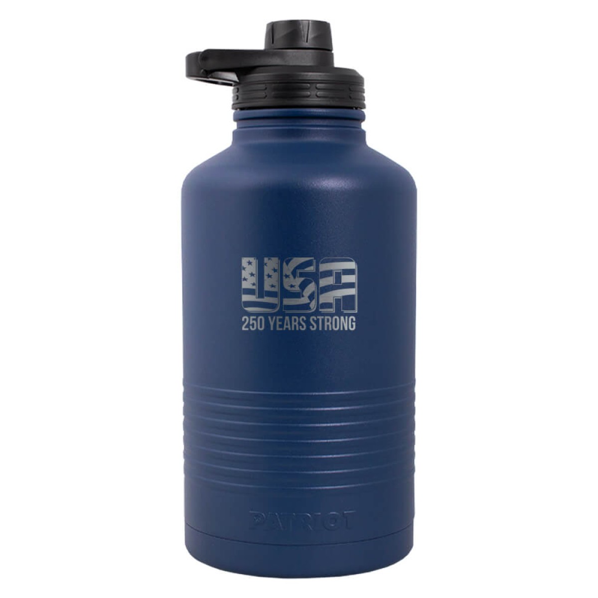 Constructed from our classic copper-lined stainless steel combo, the latest addition to the Patriot Coolers family is brought to you by customer demand. The double-walled, vacuum-sealed insulation keeps your H2O ice cold for up to 24 hours, and the built-in carrying handle makes hauling this 64oz beast around easy as pie. Decorated to commemorate America's 250th Anniversary.