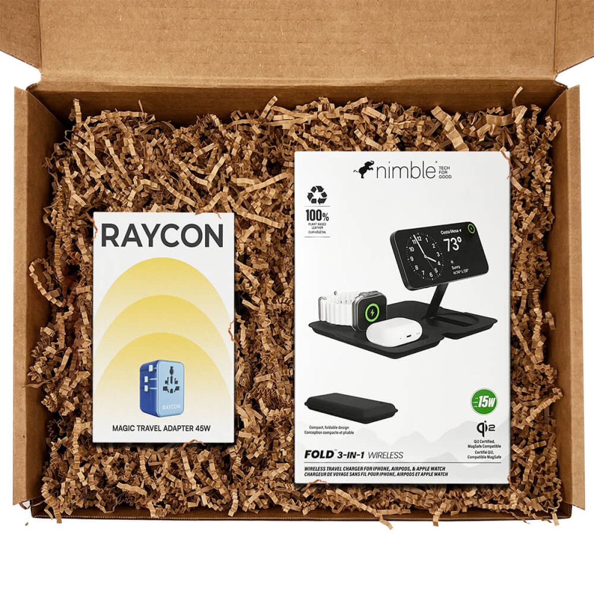 Time to fly! This gift set includes the Raycon Magic Travel Adapter and Nimble FOLD 3-in-1 Wireless Charger for those jet setters to be powered up and prepared no matter where their travels take them.