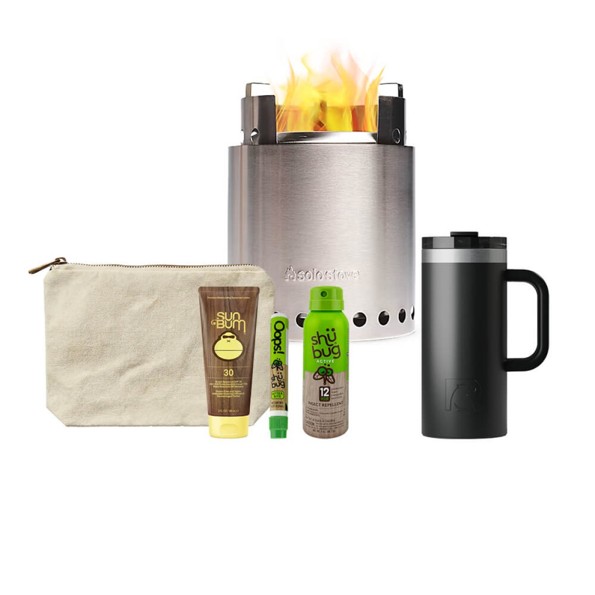 Enjoy the outdoors with this adventure-ready set. The solostove Campfire, Sun Bum Outdoor Kit, and RTIC Road Trip 16oz travel mug have you covered.