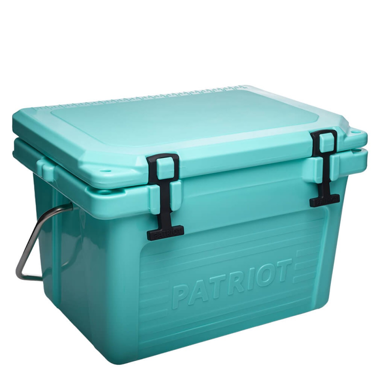 The 20qt Patriot Cooler is built for all of your adventures! Whether you’re heading out for a day trip to the beach, fishing on the lake, or watching the kids play their favorite sport, the Patriot Cooler keeps food and drinks colder with its extra thick insulated walls. Includes an embossed measuring ruler on the lid for the fishing enthusiasts. Easily carry the cooler with the molded side handles or use the convenient heavy-duty stainless-steel locking handle.