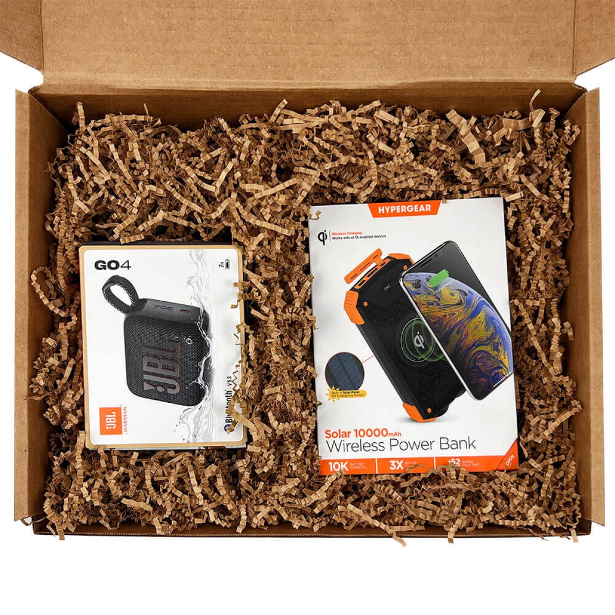 The perfect companion for music fans who love being outside. This custom set includes a HyperGear Solar 10000mAh Wireless Power Bank and JBL Go 4 Bluetooth Portable Speaker so you can keep the tunes going wherever you roam.