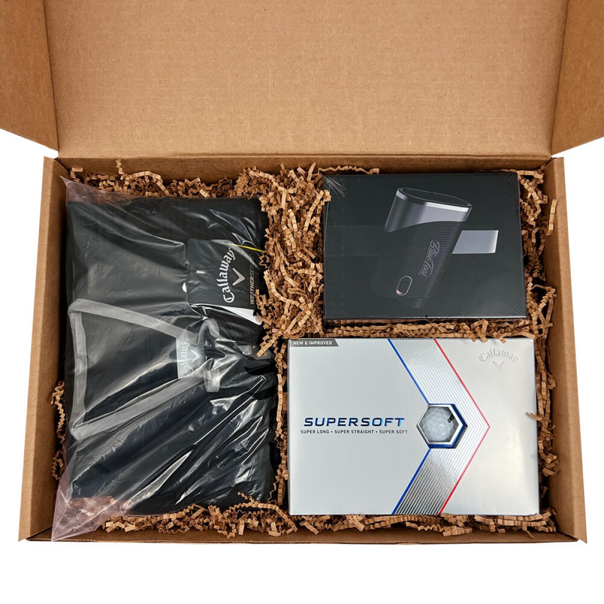 This custom set is for that Golf Pro in your life (or at least they want to look like one on the links), and includes the Callaway Ottoman Fleece Men's Pullover, a box of Callaway Supersoft Golf Balls and the incredible Blue Tees Golf Series 3 Max Rangefinder. Include a custom greeting card for another level of appreciation.